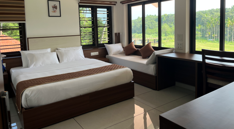 Book RoomRoom Facilities: Total Area: 252 sq. ft. | River View | King-Size Bed | Sofa | Two Workstations with Chairs | Air Conditioning | Hot Water Supply | Locker