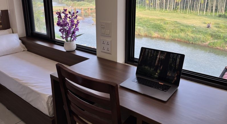 Stunning views of the tranquil river, refreshing gentle breezes, and direct morning sunlight streaming onto the bed. Total area: 315 sq. ft.